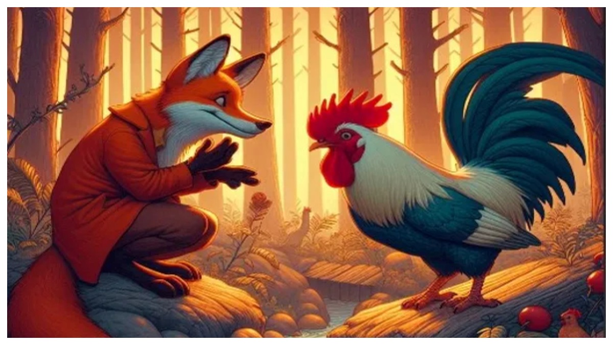 నక్కల మోసపు వలలో కోడి ఎలా పడిందో ఈ కథలో కవి వర్ణించాడు. ఒక తలుపులో, కోడి అందమైన గొంతుతో అరుస్తోంది, మరియు దాని ఏడుపు రోజువారీ సూర్యోదయానికి సంగీతంలా ఉంది. అయితే ఆ అడవిలో ఒక నక్క కూడా ఉండేది. నక్క కోడిని పట్టుకుని దాని దగ్గరికి వచ్చి తినడానికి సిద్ధంగా ఉంది. కానీ కోడి నక్కకు భయపడింది. కానీ నక్క చెప్పింది, నాకు భయం లేదు, నేను మీ సంగీతం వినడానికి వచ్చాను. ఇది నమ్మిన కోడి నక్కతో స్నేహం చేసింది.