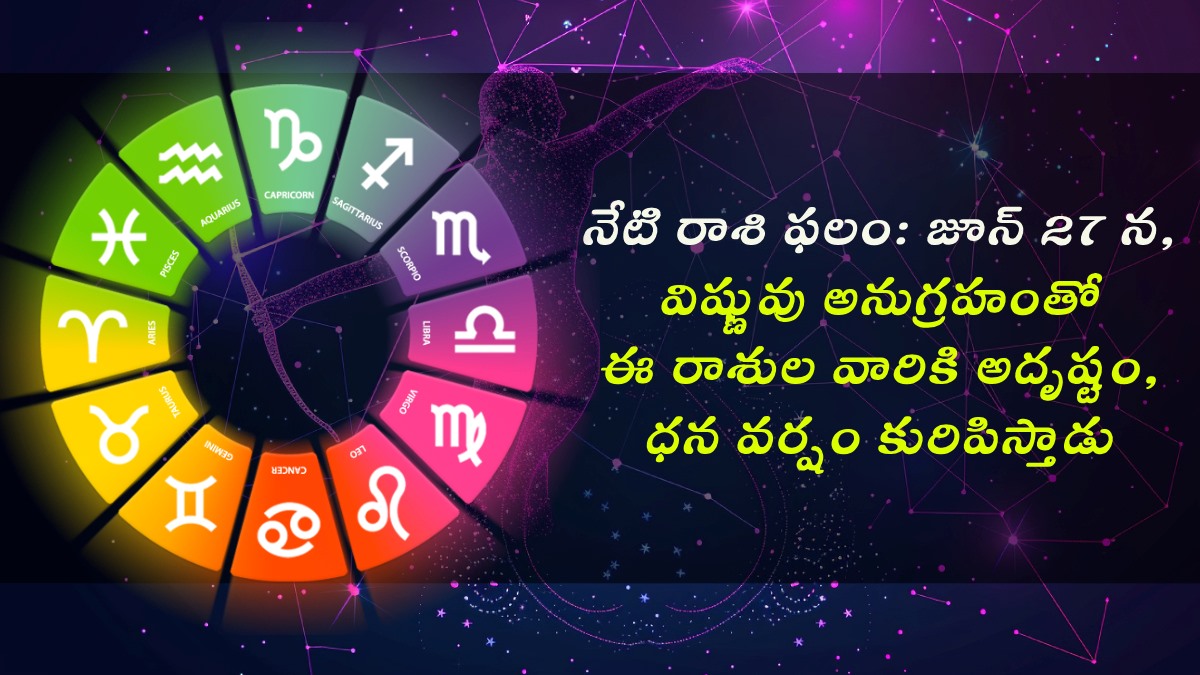 నేటి రాశి ఫలాలు:జూన్ 27 ఈరోజు విష్ణవు అనుగ్రహంతో ఈ రాశులకి అద్రుష్టం,.ధన వర్షం కురిపిస్తాడు