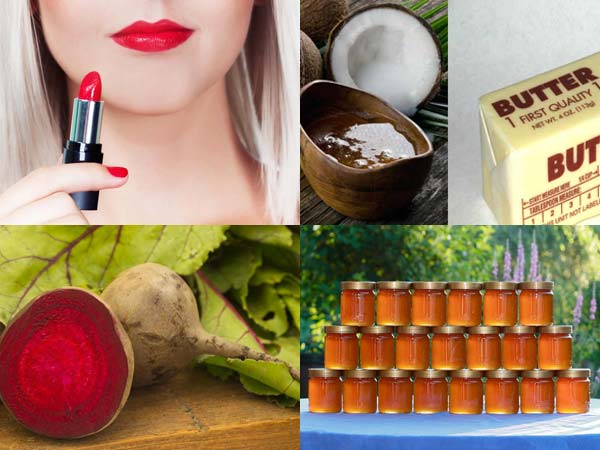 తేనె: రెండు మూడు చుక్కలను మీ చేతి వేళ్ళతో తేనె తీసుకొని, పెదాల మీద సమంగా మర్ధన చేయాలి. తేనె పెదాలను మాయిశ్చరైజ్ చేసి పెదాలను సున్నితంగా ఉంచి, పగుళ్ళ నుండి కాపాడుతుంది.