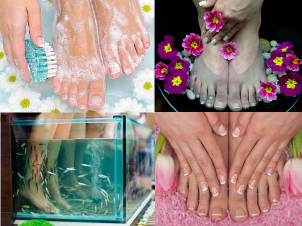 హాట్ వాటర్ పెడిక్యూర్: పూల్లో పాదాలను ముంచి వేడినీళ్ళతో శుభ్రం చేసుకోవడం వల్ల రిలాక్స్ గా ఉంటుంది. అంతే కాదు పాదాలు శుభ్రపడుతాయి.