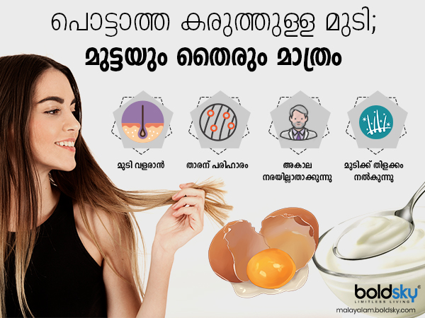 గుడ్డులో ఉండే ప్రోటీన్ మీ జుట్టును నల్లగా మిళమిళ మెరిసేట్లు చేస్తుంది.