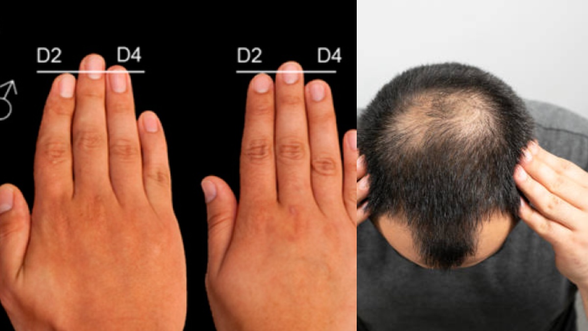తాజాగా, అమెరికాకు చెందిన జో విట్టింగ్టన్ అనే డాక్టర్ తన ఇన్స్టాగ్రామ్ పేజీలో ఒక వ్యక్తికి బట్టతల వస్తుందో లేదో తెలుసుకోవడానికి ఆసక్తికరమైన, సులభమైన మార్గాన్ని వెల్లడించారు. చేతి వేళ్లు కూడా ఆ వ్యక్తికి బట్టతల వస్తుందా లేదా అనే విషయాన్ని వెల్లడిస్తుందని ఆ డాక్టర్ చెప్పారు. ఒక వ్యక్తిలో బట్టతల వచ్చే సంకేతాలు వ్యక్తి యొక్క ఉంగరం మరియు చూపుడు వేళ్ల నిష్పత్తి బట్టి తెలుసుకోవచ్చని వెల్లడించారు. దీనిని 2D:4D నిష్పత్తి అంటారు. అంటే ఒకరి చూపుడు వేలు పొడవుతో పోలిస్తే ఉంగరపు వేలు పొడవుగా ఉంటే, ఆ వ్యక్తికి బట్టతల వచ్చే అవకాశం 6 రెట్లు ఎక్కువ అని అభిప్రాయం. ఒకవేళ మీ చూపుడు వేలు మీ ఉంగరం వేలు కంటే పెద్దగా కంటే మీకు కూడా బట్టతల వస్తుంది.