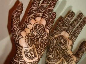 సౌందర్యాన్ని పెంచే సాధనం: మెహిందీ డిజైనులో ప్రాథమిక పరిజ్ఞానంతో పాటు కొద్దిగా సృజనాత్మకత ఉంటే చాలు..అలాంటి డిజైన్లను ఆవిష్కరించడం చాలా సులువు. తమకున్న అందానికి మరింత మెరుగులు దిద్దేందుకు మహిళలు మెహిందీని సాధనంగా ఉపయోగిస్తున్నారు. మగువల సుకుమారమైన అరచేతులు, పాదాల మీద వేసే మెహిందీ డిజైన్లు వారికి కొత్త అందాన్ని సంతరింపచేస్తున్నాయి. మహిళలు ముఖ్యంగా పెళ్లీడుకొచ్చిన అమ్మాయిలు తమ అందాన్ని మరింత పెంచుకునేందుకు మెహిందీని సాధనంగా ఉపయోగించుకుంటున్నారు. మెహిందీలో వివిధ పద్దతులున్నాయి. మెహిందీ ఎక్కడిదాకా పెట్టాలనకుంటున్నారో అక్కడిడాకా అడ్డగీత గీయాలి. ఆ గీత మధ్యభాగం నుంచి చూపుడు వేలుదాకా వేసుకోవాలి అంప్పడు అందంగా కనిపిస్తుంది. మెహిందీని మొదట అవుట్ లైన్ తో మొదలు పెట్టి నిలువుగీతలు అడ్డుగీతలు, పువ్వులు, అర్ధచంద్రాకారం లాంటి డిజైన్లతో తీర్చి దుద్దుకోవాలి.