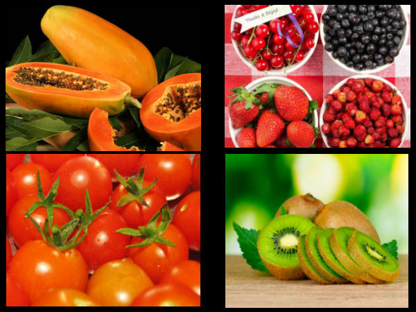 బ్లూ బెర్రీస్: ఇందులో ఉండే యాంటిఆక్సిడెంట్స్ కణాలు ఆక్సిజన్ను ఉపయోగించుకున్న తరవాత విసర్జించిన ఫ్రీ రాడికల్స్ వల్ల జరిగే హానిని రిపెయిర్ చేయటానికి ఉపయోగపడతాయి. ఇవి సమృద్దిగా ఉన్న ఆహారం తీసుకోవటం వల్ల కొలాజెన్ ఉతపత్తి పెంచవచ్చు. కిస్మిస్, టమాటా, వెల్లుల్లి, ద్రాక్షా, పప్పుదినుసులు, సోయా, గ్రీన్ టీ, పాలకూర...