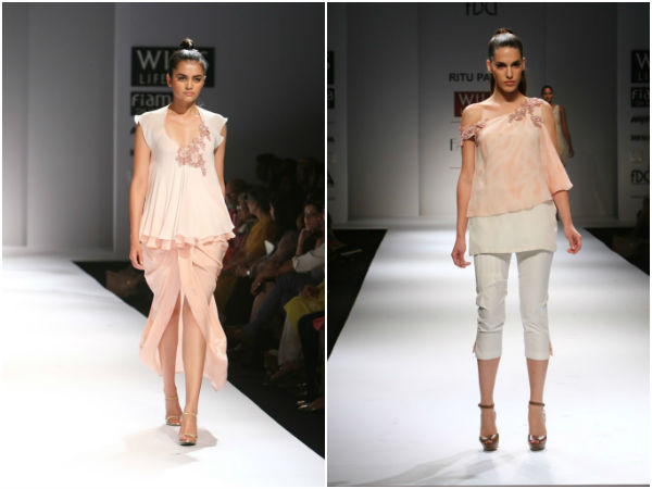 డబ్ల్యుఐఎఫ్ డబ్ల్యు 2015 ర్యాంప్ వాక్ లో పాస్టల్ షేడ్స్ సెంటర్ ఆఫ్ అట్రాక్షన్ గా ఉన్నాయి. రితు పాండే డిజైన్ చేసిన ఐ లో గౌన్స్ మరియు స్లిట్ షార్ట్ స్కర్ట్స్ ఆడియన్స్ ను బాగా ఆకట్టుకొన్నాయి . అలాగే ఈ కలెక్షన్స్ లో సాటిన్ షర్ట్స్ మరియు ప్యాచ్ వర్క్ బాడీస్ చాలా డిఫరెంట్ గా మరియు చాలా అరుదుగా కనిపించాయి. రితు పాండే డిఫరెంట్ లేస్ వర్క్ తో చాలా డిఫరెంట్ గా డిజైన్ చేసి, ప్రేక్షకులను ఆకట్టుకోగలిగారు.