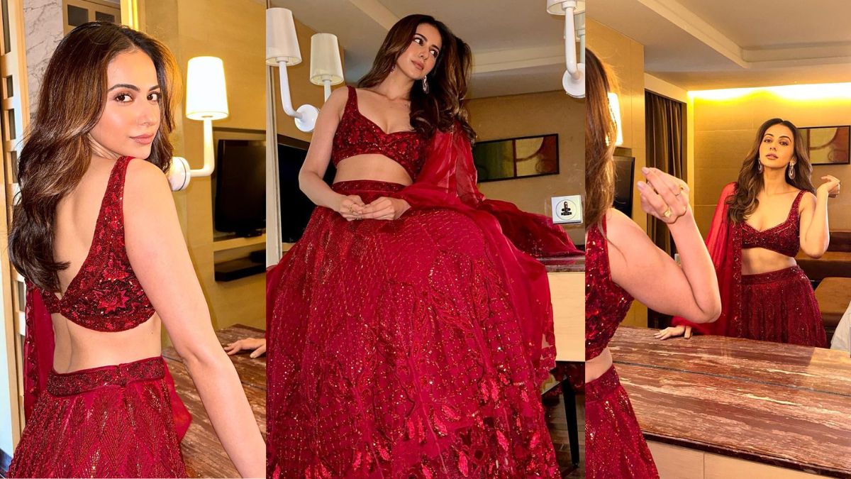 Rakul Preet Singh: అద్దంలో పరువాలు చూసుకుంటున్న రకుల్.. మెరూన్ లెహంగాలో అదిరిపోయిందిగా