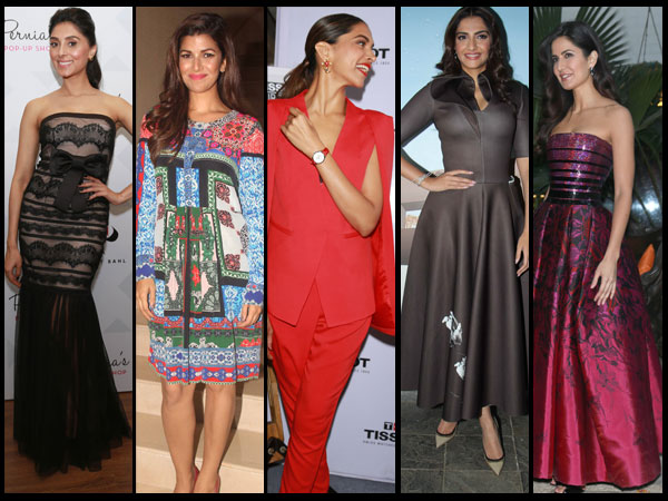 కత్రీనా కైఫ్ మరూన్ కలర్ ఈవెనింగ్ గౌనులో అధ్భుతం గా ఉంటే, ప్రముఖ డిజైనర్ పేర్నియా ఏమో ఫిష్ కట్ గౌను ని ఎంచుకుంది.ఎయిర్ లిఫ్ట్ సినిమా ప్రమోషన్స్లో భాగంగా ఆ సినిమా హీరోయిన్ నిమ్రత్ ధరించిన దుస్తులు మది దోచేటట్లున్నాయి.