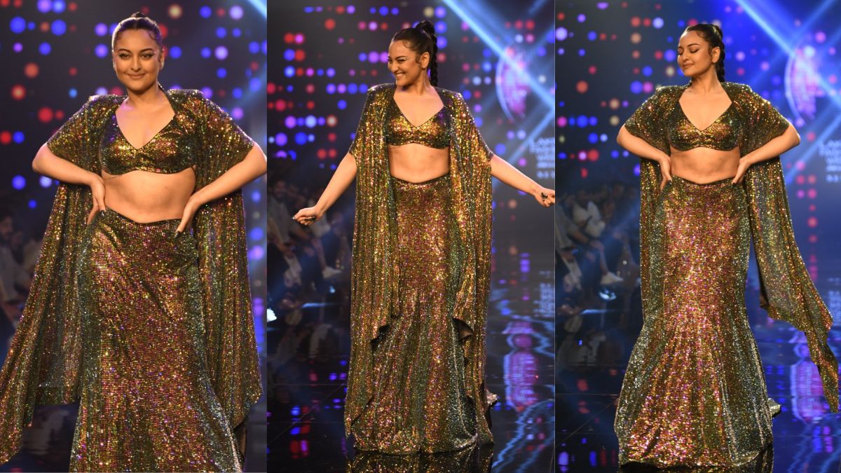 రన్ వే వేదికగా జరిగిన ఈ షోలో సోనాక్షి గోల్డ్ బ్లాక్ కలర్ చమ్కీల డ్రెస్సులో మెరిసిపోయింది.