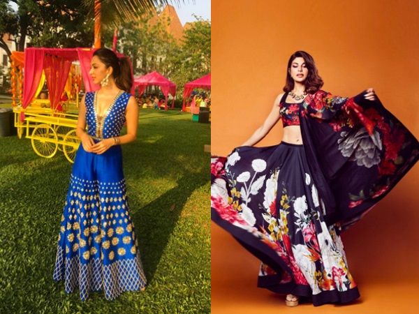 ఈ అందమైన లెహెంగాలో జాక్వెలిన్ మరింత అందంగా కనిపిస్తోంది కదూ. రాయల్ బ్లూ కలర్ కు ఉన్న ప్రత్యేకత అదే. అందాన్ని రెట్టింపు చేస్తుంది. రాయల్ బ్లూ లెహంగాపై ముద్రించిన పువ్వులు దుస్తులకు కొంత ప్రవహించే మరియు గాలులతో కూడిన రూపాన్ని అందిస్తాయి. నెక్లెస్ మరియు చిన్న చెవిపోగులు ధరించడం ద్వారా మీరు రూపాన్ని పూర్తి చేయవచ్చు.