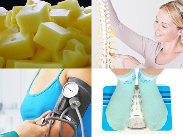 ఎముకల బలానికి: చీజ్ లో కాల్షియం ఉండుట వల్ల ఎముకలు బలంగానూ, ఆరోగ్యంగానూ ఉంటాయి. ఎముకలు మరియు మృదులాస్థి ని కాపాడటానికి అవసరమైన విటమిన్ D కూడ ఉంటుంది. ఆస్టియోపొరోసిస్ నివారణకు: కాల్షియం, విటమిన్ డి ఉండుట వలన ఆస్టియోపొరోసిస్ ను నివారించే మంచి ఆహారంగా చూడవచ్చు. ఎముకలు పెళుసుగా లేకుండా చేస్తుంది, మరియు ఎముకల డెన్సిటీని పెంచుతుంది.