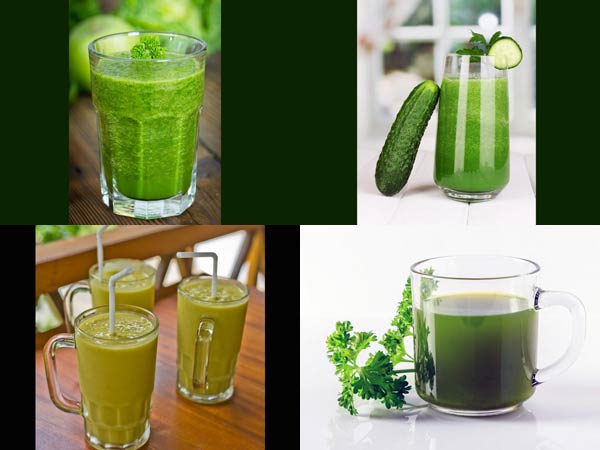 గ్రీన్ వెజిటేబుల్స్ తో తయారు చేసే జ్యూసులు చాలా రకాలు ఉన్నాయి. వాటిలో బ్రొకోలి, కేలా, కొత్తిమీర, బిట్టర్ గార్డ్, టమోటో, ఇక పండ్ల విషయంతో కివి, మరియు పచ్చిమామిడికాయ. ఈ గ్రీన్ జ్యూసుల్లో అత్యధికంగా పోషకాలు ఉంటాయి. బరువు. తగ్గించుకోవడానికి, ఆరోగ్యంగా, ఉత్సాహంగా ఉండటానికి ఈ జ్యూసులను రోజులో ఎప్పుడైనా త్రాగవచ్చు. గ్రీన్ వెజిటేబుల్స్ క్లోరోఫిల్ ను ఉత్పత్తి చేస్తుంది. ఇది శరీరానికి కావల్సిన ఆక్సిజన్ ను అందిస్తుంది. ఇంకా బ్లడ్ సర్కులేషన్ ను క్రమబద్దం చేస్తుంది. శరీరంలో నిల్వ ఉన్న టాక్సిన్స్ (విషాల)ను బయటకు నెట్టివేస్తుంది. ఇందులో ఉండే చాలా రకాల యాంటీఆక్సిడెంట్స్ జీర్ణవ్యవస్థను మెరుగుపరచి, క్యాన్సర్ తో పోరాడుతుంది.