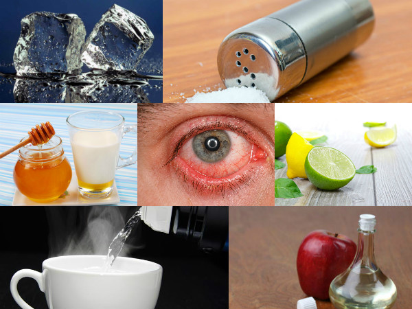 కొంచెం ఉప్పు తీసుకొని వేడినీళ్ళలో వేయాలి. తర్వాత అందులో కాటన్ బాల్ డిప్ చేసి ఇన్ఫెక్ట్ అయిన కళ్ళ మీద అప్లై చేయాలి. ఈ ఉప్పునీరు చాలా సులభమైన మరియు చాలా హెల్ప్ఫుల్ రెమెడీ.
