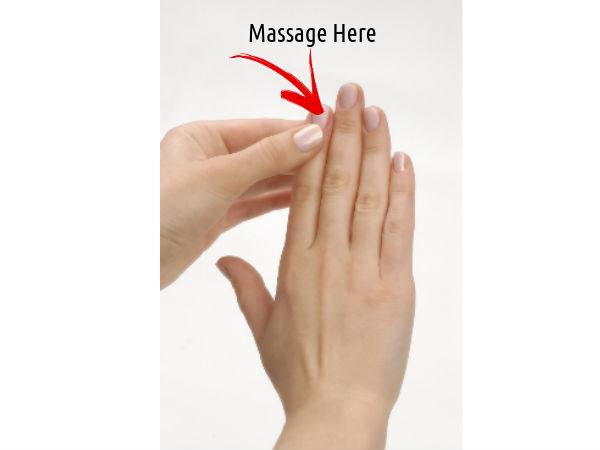 అంతేకాకుండా, మీ బొటనవేలు, మధ్య వేలు మధ్య చర్మాన్ని వత్తండి. నెమ్మదిగా వత్తిడిని అప్లై చేయండి కానీ స్థిరంగా ఉంచండి. కంగారు లేదా వత్తిడి వల్ల వచ్చిన కొన్నిరకాల తలనొప్పులకు ఈ పద్ధతి బాగా పనిచేస్తుంది.