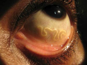 ప్రమాదకరమైన లోవా లోవా వార్మ్ కళ్ళ మీద దాడి చేసేటటువంటి పెస్ట్ ఉంది. లోవా లోవా వార్మ్ గురించి తెలుసుకోవాంటే విషయం చాలానే ఉంది. ఐ వార్మ్(Eye Worm) ముఖ్యంగా ఇది 20సెం.మీ పొడవు ఉంటుంది. ఈ ఐ వార్మ్ ను ఒక వ్యక్తి కంటిలో నుండి శస్త్రచికిత్స ద్వారా తొలగించబడ్డారు డాక్టర్ . యాష్లే థామస్ ములముట్టిల్, ఇటువంటి కేస్ కు మొట్టమెదటి సారిగా ఏకైక శస్త్రచికిత్స అంధించిన డాక్టర్ గా రికార్డ్ నమోదు చేసుకున్నారు. ఈ శస్త్రకిస్త చేసి 7వార్మ్ తొలగించాడు. అది ఈ చివరగా తీసిన 7వ వార్మ్ చాలా పెద్దది అని చెప్పారు.