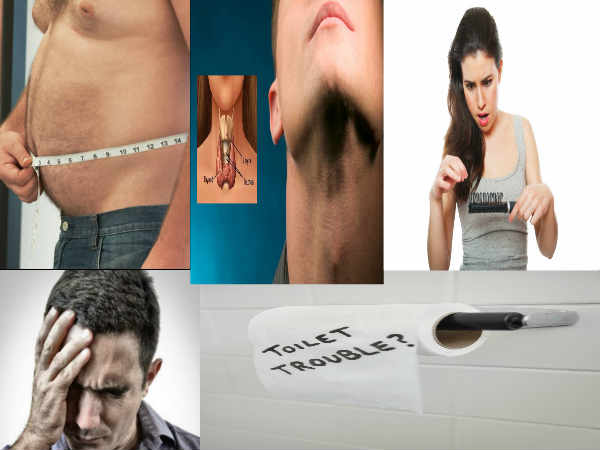 మలబద్దకం: హైపోథైరాయిడిజం మీ ప్రేగు కదలికల(బౌల్ మూమెంట్)ను అపక్రమం చేస్తుంది. థైరాయిడ్ అధిక స్థాయిలో కలిగి ఉన్న వ్యక్తులు నిరంతరం మలబద్దక సమస్యతో బాధపడుతుంటారు.