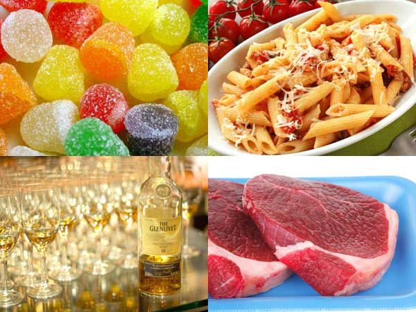 షుగర్ స్వీట్స్/మిఠాయి: షుగర్ స్వీట్స్ లో హైకార్బొహైడ్రేట్స్ కాబడి ఉంటాయి. వీటిని తినడం వల్ల కడుపు ఫుల్ గా అనిపించక చాలా తింటారు. చాక్లెట్స్, కేక్స్ తినడం వల్ల చాలా అనారోగ్య సమస్యలు తలెత్తుతాయి. దాంతో శరీరంలోని రక్తంలో చక్కెర స్థాయిలు పెరుగుతాయి. దాంతో నిద్రాభంగిమ కలుగుతుంది. కాబట్టి కేక్, కుక్కీస్, ఇతర డిసర్ట్స్ కు దూరంగా ఉండటం చాలా శ్రేయస్కరం.