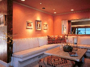 హాలులో ఏవిధమైన సిటింగ్ ఏర్పాట్లు ఉంటే బావుంటుందో చూపండి. ఏ మ్యూజిక్ సిస్టం, టివి., వాల్ హ్యాంగింగ్స్, లైటింగ్ సిస్టం, సోఫాల దగ్గర నేలమీద సుతిమెత్తని తివాచీలు ఎలా ఏర్పాటుచేస్తే అందంగా ఉంటుందో చూడండి. మీ సీటింగ్ కు కనీసం మూడు మీటర్ల దూరంలో టీవీ దాని పక్కనే ఓ చిన్న దానిపై తాజాపూలతో వాజ్ ఉంటే లుక్ బాగుంటుంది.
