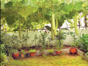 టెర్రస్ పై ఏ కొద్ది స్థలం దొరికినా దాన్ని ఉపయోగించుకోవాలి. టెర్రస్ అంచుల్లో అడుగున్నర ఎత్తున ఎర్రమట్టితో, సేంద్రియ ఎరువులతో తోటలా తయారు చేసుకొని ఆ తోటలో సొర, కాకరకాయ, అలసంద, నిమ్మ, మిరప, చేమ, అరటి, పాలకూర, మెంతి, పుదీనా, కరివేపాకుతో పాటు అనేక పూల మొక్కలు, ఔషధ మొక్కలు కూడా పెంచుకోవచ్చు.