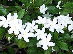 నూనె రాసినట్లుగా నిగనిగలాడే ఆకుల మధ్యనుంచి అయిదు రేకులతో నక్షత్రాల్లా విప్పారిన గరుడవర్ధనం పూవును చూస్తున్నా, ప్రసన్నతకు మరో పేరులా ధవళవర్ణంలో ముద్దగా మెరిసే నందివర్ధనాలను చూస్తున్నా మనసు పవిత్ర భావనతో, ప్రశాంతతో నిండిపోతుంది. నలుపుతెలుపుల సమ్మేళనమే, సమన్వయమే జీవితమనే గొప్ప సత్యాన్ని నందివర్ధనాలు మనకు చెబుతున్నట్లుంటుంది. అనాదిగా ఇంటి తోటలో పెంచుకునే ఈ మొక్కల శాస్ర్తియ నామం ఒకటే- టాబర్నేమాంటోనియా కొరొనేరియా! వీటిని కేప్ జాస్మిన్ అని కూడా అంటారు.