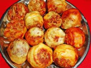 2. మినపప్పు రెండు గంటలు పాటు నానబెట్టుకుని మెత్తగా రుబ్బుకుని తడిపిన బియ్యంపిండిలో వేసి తగినంత ఉప్పు కలిప ఒక గంట నాననివ్వాలి. (బియ్యపు పిండి, మినపప్పు మిశ్రమం ఇష్టపడని వారు..మైదా, చిటికెడు ఉప్పు, నీళ్ళు జాగురు గా కలుపుకొని పక్కన పెట్టుకోవాలి).
