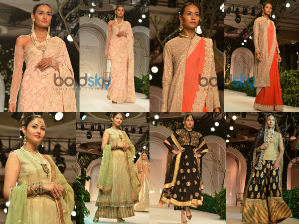 క్లిష్టమైన చికాన్, జార్జెట్ మరియు జర్దోజి వర్క్ చేసిన జార్టెట్ మరియు వెల్ వెట్ ఫ్యాబ్రిక్ దుస్తులను ర్యాప్ మీద మనం చూడవచ్చు. పొడవాటి ఎంబ్రాయిడరీ జాకెట్లు, శారీస్ మరియు లెహంగాస్ ఒక సమకాలీన లుక్ ను జోడించాయి.