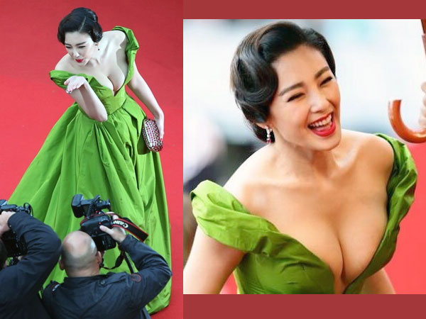 Xhang Yuqi: చైనీస్ నటి కేన్స్ 2013లో ఉత్తమ వస్త్రాలంకరణలో ఆకర్షణీయంగా కనిపించినటువంటి ప్రముఖ నటుల్లో ఈమె ఒక్కరు. 2013హాట్ కోచర్ సేకరణ నుండి ఈ ఆకుపచ్చ Ulyana segeenko డీప్ నెక్ లైన్ మరియు షోల్డర్ స్ట్రాప్ దుస్తులను ధరించ రెడ్ కార్పెట్ మీద ఊపిరినాడనివ్వకుండా చేసింది.
