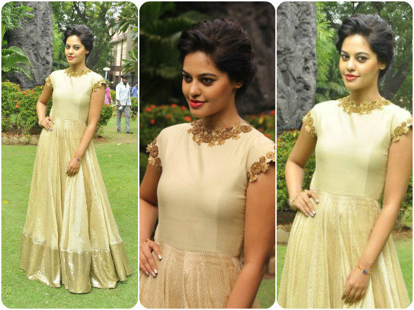 సహజంగా గోల్డ్ కలర్ అంటే ప్రతి ఒక్కరికీ ఇష్టమైన ఫేవరెట్ కలర్. అటువంటి కలర్ డ్రెస్సులో మన సౌత్ ఇండియన్ స్టైలిష్ యాక్టర్స్ బింధుమాధవి రీసెంట్ గా ఒక ప్రెస్ మీట్ లో కెమెరాలకు చిక్కవింది. సౌత్ యాక్టర్స్ బింధుమాధవి ఫ్లోర్ లెగ్త్ కలిగిన ఒక గౌన్ దరించి ‘తమిళిక్ ఎన్ ఒన్ డ్రై అళుత్తవం' అనే తమిళ్ సినిమా ప్రెస్ మీట్ కు హాజరైంది . ఈ డ్రెస్సులో బింధుమాధవి సెన్షేషనల్ గా కనిపించింది ముఖ్యంగా ఆమె యొక్క చిరునవ్వు మరింత అట్రాక్షన్ గా కనబడేలా చేసింది.