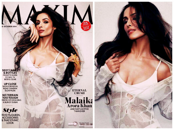 అక్టోబర్ నెల మ్యాగజైన్ కవర్ పేజ్ చాలా హాట్ గా కనిపిస్తున్నది. హాటెస్ట్ సెలబ్రెటీ మలైకా అరోరా ఖాన్ మ్యాగ్జిమ్ మ్యాగజైన్ కవర్ పేజీ కోసం హాట్ అండ్ సెక్సీగా ఫోజలించి అందరినీ ఆశ్చర్యానికి గురిచేసింది. చాలా పలుచగా పరదాల్లా ఉండే డ్రెస్సును ధరించి ఫోటో షూట్ కు హాజరవ్వడం అందరినీ సెన్సేషన్ కు గురిచేసింది.