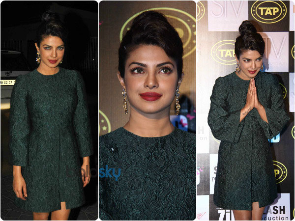 డాల్స్ అండ్ గబ్బనా డ్రెస్సులో బ్యూటిఫుల్ ప్రియాంకా చోప్రా ‘జిద్'మూవీ మ్యూజిక్ లాంచ్ లో పవర్ ఆఫ్ గ్రీన్ గా కనిపించారు. బ్యూటిఫుల్ ప్రియాంకా చోప్రా బాటిల్ గ్రీన్ డ్రెస్సు నీలెగ్త్ ధరించి రావడంతో అందరి కళ్ళు ఆమె మీద. చాలా చక్కగా అలంకరించుకొని రావడంతో ఈవెంట్ కు వచ్చన ప్రతి ఒక్కరినీ ఆకర్షించింది.