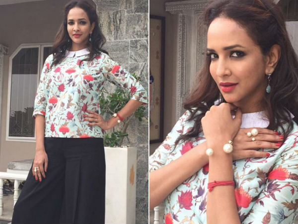 సౌత్ ఇండియన్ యాక్టర్స్ మంచు లక్ష్మీ ఫ్లవర్ ప్రింట్ పీటర్ కాలర్డ్ ఎఎస్ హెచ్ హౌట్ కౌచర్ టాప్ మీదకు ప్లెయిన్ బ్లాక్ తరున్ తహ్లియానీ ప్లాజో ప్యాంట్ ఫుల్ గా మోడ్రన్ గా కనిపించింది.