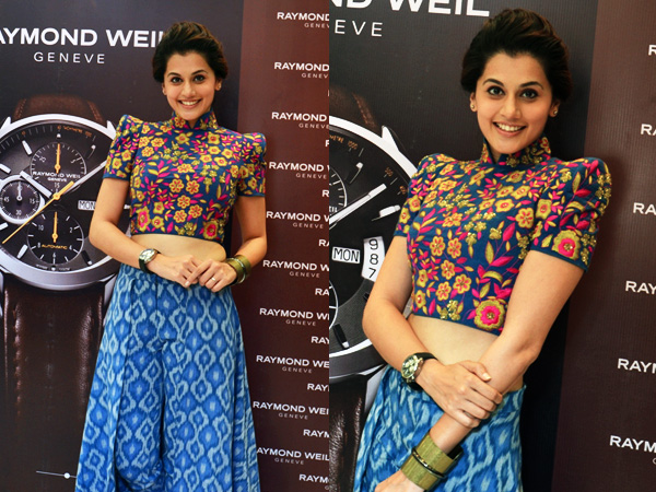 తాప్పి ధరించిన టాప్ స్టైల్ చాలా హై స్ట్రీట్ ఫ్యాషన్ గా ఉన్నందును, దాని మీదకు స్కిన్నీ డినిమ్ లేదా లాంగ్ స్కర్ట్ ధరించి మరింత అట్రాక్షన్ గా కనిపించింది.