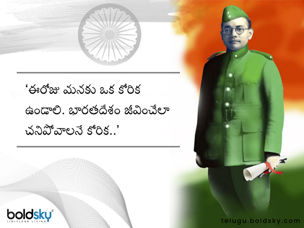 'మీరు నాకు రక్తం ఇస్తే.. నేను మీకు స్వేచ్ఛ ఇస్తాను' అనే నినాదం భారతదేశంలోని అత్యంత గౌరవనీయమైన నినాదాల్లో ఒక ప్రముఖమైన దానిని నేతాజీ సుభాష్ చంద్రబోస్ మనకు అందించారు. ఈయన ఆలిండియా కాంగ్రెస్ పార్టీ అధ్యక్షుడిగా రెండుసార్లు మరియు భారత జాతీయ సైన్యం నాయకుడిగా కూడా పని చేశారు. అంతేకాదు ఈయన 'ఆజాద్ హిందూ ఫౌజ్' అనే సంస్థను ఏర్పాటు చేసి బ్రిటీష్ వారికి వ్యతిరేకంగా పోరాటం చేశారు. ఒడిశాలోని కటక్ లో 1897, జనవరి 23వ తేదీన జన్మించిన ఈయన అతి తక్కువ కాలంలో అత్యంత ఉన్నత శిఖరాలకు ఎదిగారు.