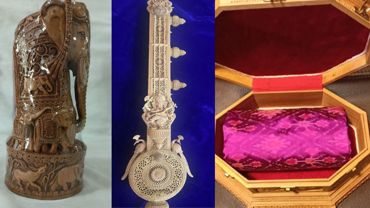 చందనపు చెక్కతో తయారు చేసిన సితారను కూడా మోదీ ఫ్రాన్స్ అధ్యక్షుడు మెక్రాన్ కు బహుకరించారు. అద్భుతమైన పనితీరుతో ఈ కళాఖండం ఆకట్టుకుంటుంది. రాజస్థానీ కళాకారులు పూర్తిగా చేతులతో ఈ చందనపు సితారను తయారు చేస్తారు. అత్యంత క్లిష్టమైన డిజైన్ తో చూడగానే మంత్రముగ్దులను చేస్తుంది.