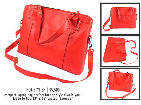 1. హాట్ అండ్ స్టైలిష్: స్టైల్ గా కనబడుతున్నకాంపాక్ట్ లాప్ టాప్ బ్యాగ్ మీకు పర్ఫెక్ట్ గా మ్యాచ్ అవ్వొచ్చు. ఈ బ్యూటీఫుల్ బ్యాగ్ ను బారొక్యూ తో 13" by15" లో తయారుచేయబడినది. దీని ఖరీదు రూ. 5,500. మరిన్ని వివరాలకోసం www.baroque.in చూడండి.