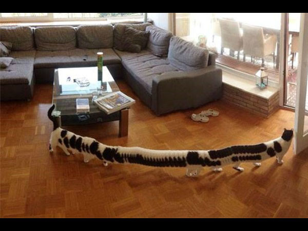ఒక వ్యక్తి పానోరమిక్ యాంగిల్ లో తన లివింగ్ రూమ్ ని తియ్యడానికి రెడీ అయినప్పుడు, ఒక పిల్లి ఆ యాంగిల్ నే నడుస్తున్నందున - వచ్చిన దాని ఫలితమే ఈ పొడవైన పిల్లి.