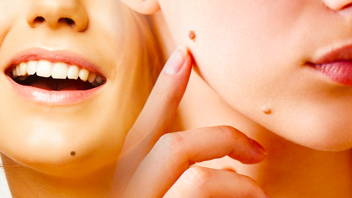 కనుబొమ్మలు మరియు కళ్ల మధ్య పుట్టుమచ్చలు