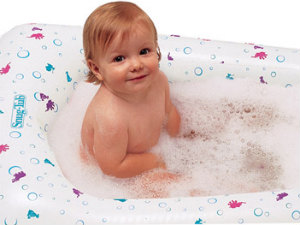 సాధ్యమైతే బేబీని బాత్ టబ్ పై కూర్చోపెట్టండి. టబ్ లోపల ఒక సీటు వేయటం కూడా మంచిదే. వేసే సీటు సౌకర్యవంతమైనదిగా వుండేలా చూడండి. స్నానం నీరు ముట్టుకుంటే గోరు వెచ్చగా వుండాలి. అధిక వేడి వుండరాదు. అయితే, మొదలుపెట్టే ముందుగా బేబీ కాళ్లు తడపండి. బేబీని టబ్ నుండి సీటుతో సహా తీయకండి. అది ఒరిగితే ప్రమాదకరం. స్నానం తర్వాత, బేబీని ఒక పెద్ద టవల్ లో చుట్టి తడిఅంతా తుడిచేయండి. అధిక నీరు తుడిచేయటానికి టవల్ వేసి అద్దటం మంచిది.