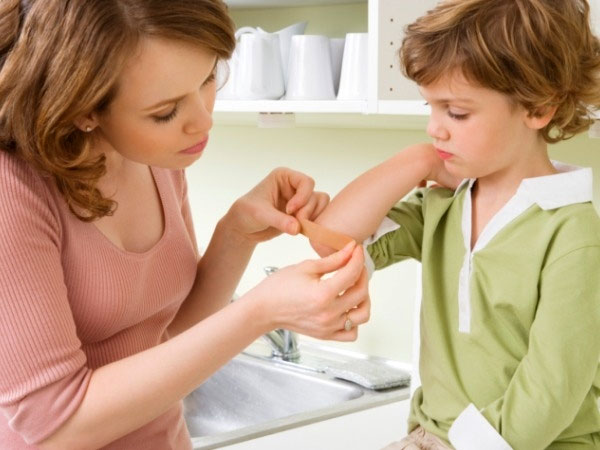జారిపడితే : పిల్లలు నేలమీద, మెట్లమీద నుంచి ఎత్తుగా ఉండే అరుగుల మీద నుంచి జారిపడి దెబ్బలు తగులుతుంటాయి. దెబ్బ తగిలిన నొప్పికంటే, భయంతో పిల్లలు ఎక్కువగా ఏడ్చేస్తారు. పిల్లల ఏడుపునకు కంగారు పడకూడదు. పిల్లలను భయపడవద్దని బుజ్జగిస్తూ, ఏం జరిగిందో, ఎక్కడ ఏవిధంగా పడిందీ, దెబ్బ ఎక్కడ తగిలిందీ తెలుసుకోవాలి. చర్మం చీరుకుపోయి రక్తం వస్తుంటే డెట్టాల్ నీటితో చర్మాన్ని శుభ్రంగా కడిగి, టించర్ను దూదితో అద్దాలి. రక్తం ఆగకుండా వస్తుంటే, తడిబట్టతో కొంతసేపు నొక్కి ఉంచాలి. ఆ తర్వాత వైద్యుని వద్దకు తీసుకువెళ్ళి వైద్య సలహా ప్రకారంగా కట్టుకట్టించడమో, మందులు ఇవ్వడమో చేయాలి.