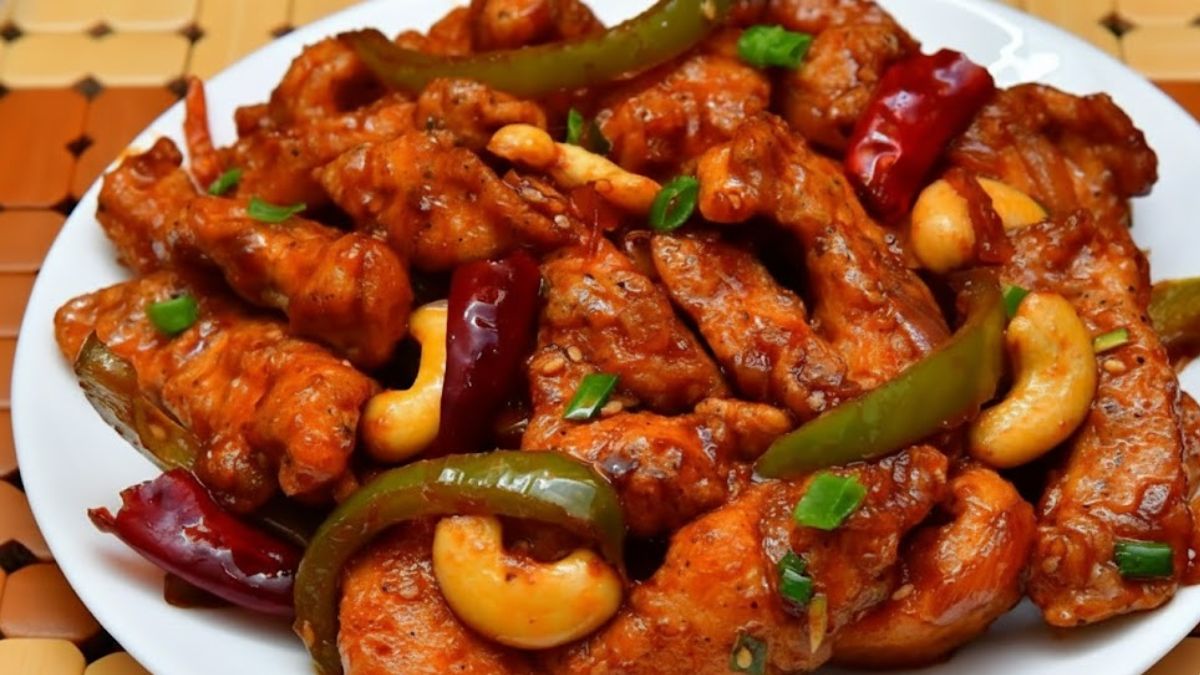 -ఇప్పుడు ముందుగా వేయించి పెట్టుకున్న చికెన్ ముక్కలు,జీడిపప్పును ఈ సాస్ మిశ్రమంలో వేయాలి. మంటను హై ఫ్లేమ్ లో ఉంచి, సాస్ అంతా ముక్కలకు పట్టేలా 2 నిమిషాల పాటు కలపాలి.
