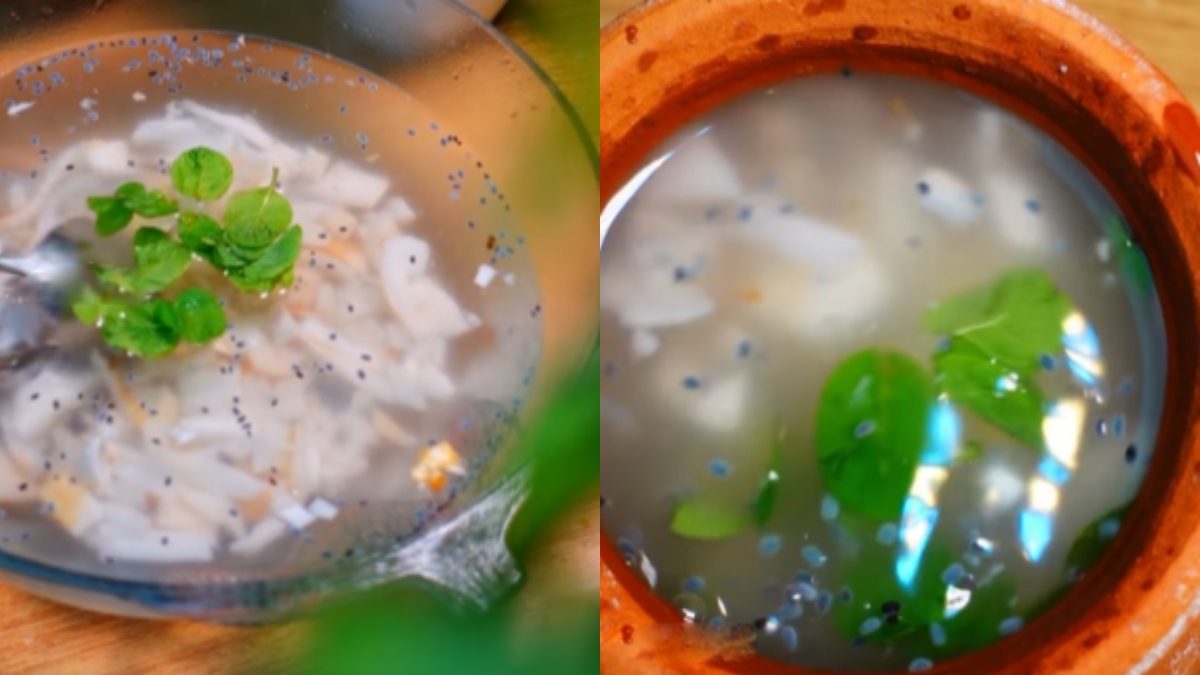 ఇప్పుడు కొబ్బరి బొండాను కోసి.. అందులోని నీళ్లను మొత్తాన్ని ఒక బౌల్లో తీసుకోవాలి. ఇప్పుడు అందులో మూడు చెంచాల చియా సీడ్స్ కూడా వేసుకోవాలి. ఆ తరువాత ఆ బౌల్ను పక్కన పెట్టుకోవాలి. ఈ లోపల అందులో మనం వేసిన చియా సీడ్స్ బాగా ఉబ్బిపోతాయి.