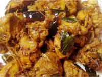 1. చికెన్ శుభ్రం చేసి అది బౌల్ లోనికి తీసుకొని అందులో అల్లం వెల్లుల్లి పేస్ట్, పసుపు, కారం, ధనియా పౌడర్, ఉప్పు వేసి బాగా కలిపి 15 నిమిషాలు ప్రక్కన పెట్టాలి. అలాగా ఉల్లిపాయను కట్ చేసి ప్రక్కన పెట్టుకోవాలి.