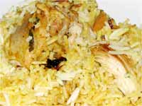 1. ముందుగా చికెన్ ను శుభ్రంగా కడిగి కొద్దిగా, పసుపు, ఉప్పు, అల్లం వెల్లుల్లి పేస్ట్, పెరుగు, కారం, గరం మసాలా వేసి బాగా కలిపి రెండు గంటల సేపు నానబెట్టుకోవాలి. బియ్యాన్ని కడిగి ఆరబెట్టుకోవాలి. ఐదు నిమిషాల తర్వాత వంతుకు రెండొంతుల నీళ్లు పోసి పొయ్యి మీద ఉడికించాలి.