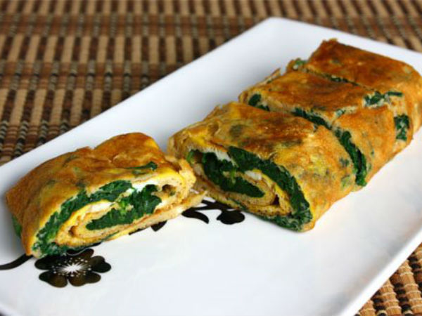 4. తర్వాత స్టౌ మీద పెనం పెట్టి సరిపడా నూనె పోసి పలచగా ఆమ్లెట్ వేయాలి. ఆమ్లెట్ వేగాక గుండ్రంగా మడవాలి. దీన్ని టమోట సాస్తో తింటే చాలా రుచిగా ఉంటుంది.
