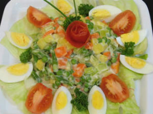 3. ఇప్పుడు దాంట్లో ఉడికించి ఉంచుకున్న కూరగాయ ముక్కలను, పండ్ల ముక్కలను వేసి బాగా కలియ బెట్టాలి. 4. ఆ తర్వాత పైన ఉడికించిన గుడ్డును నాలుగు బాగాలుగా కట్ చేసి మిశ్రమం మొత్తానికి మిరియాలపొడి, ఉప్ప చల్లితే పోషకాల రష్యన్ సలాడ్ రెడీ..!