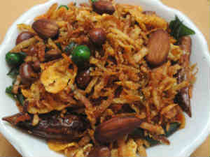 2. తర్వాత ఈ తురుమును నీళ్లలో వేసి కడిగి ఆరనివ్వాలి. తర్వాత నూనెలో వేసి కరకరలాడేలా వేయించాలి.