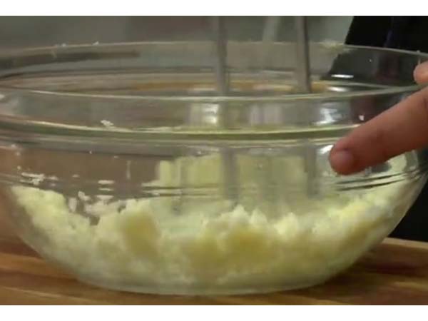 1.ముందుగా ఒక గిన్నెలో వెన్న తీసుకుని దానిలో పంచదార వేసి హ్యాండ్ బ్లెండర్తో బాగా గిలక్కొట్టాలి.