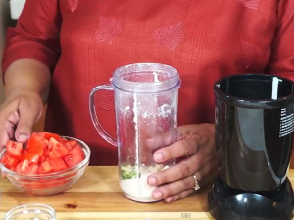 1. ముందుగా మిక్సీ జార్ లో టమోటో, జీడిపప్పు, అల్లం, మరియు పచ్చిమిర్చి వేసి ఒక నిముషం పేస్ట్ చేసుకొని పక్కన పెట్టుకోవాలి.