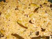 2. ఇందులోనే కడిగిన బియ్యం వేసి కొద్దిగా ఫ్రై చేసి రెండింతలు నీళ్లుపోసి కలియ బెట్టి పెద్దమంట మీద ఉడికించాలి.
