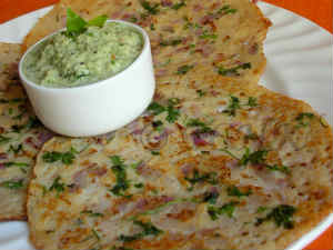 4. దోసెపిండి రెడీ. ఇప్పుడు దోశ పాన్ మీద నూనె వేసి వేడయ్యాక కొంచెం మందంగా ఊతప్పం లా వేసుకోవాలి. పలుచగా వేస్తే విరిగిపోతాయి. రెండు వైపులా వేగాక ఏదైనా చట్నీ తో సర్వ్ చెయ్యాలి. వేడిగా తింటే బావుంటుంది.