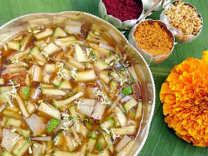 Read more about: mango neem flowers tamarind jaggery red chili salt మామిడికాయ వేప పువ్వులు కొత్త చింతపండు బెల్లం కారం ఉప్పు